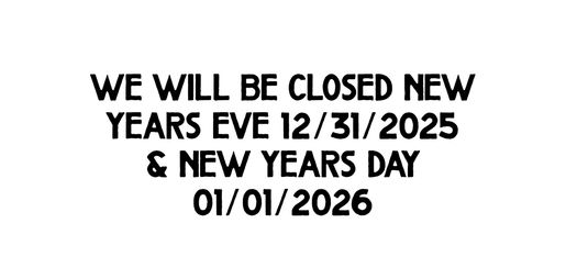 We will be closed on New Years Eve 12/31/2025 & New Years Day 01/01/2026.